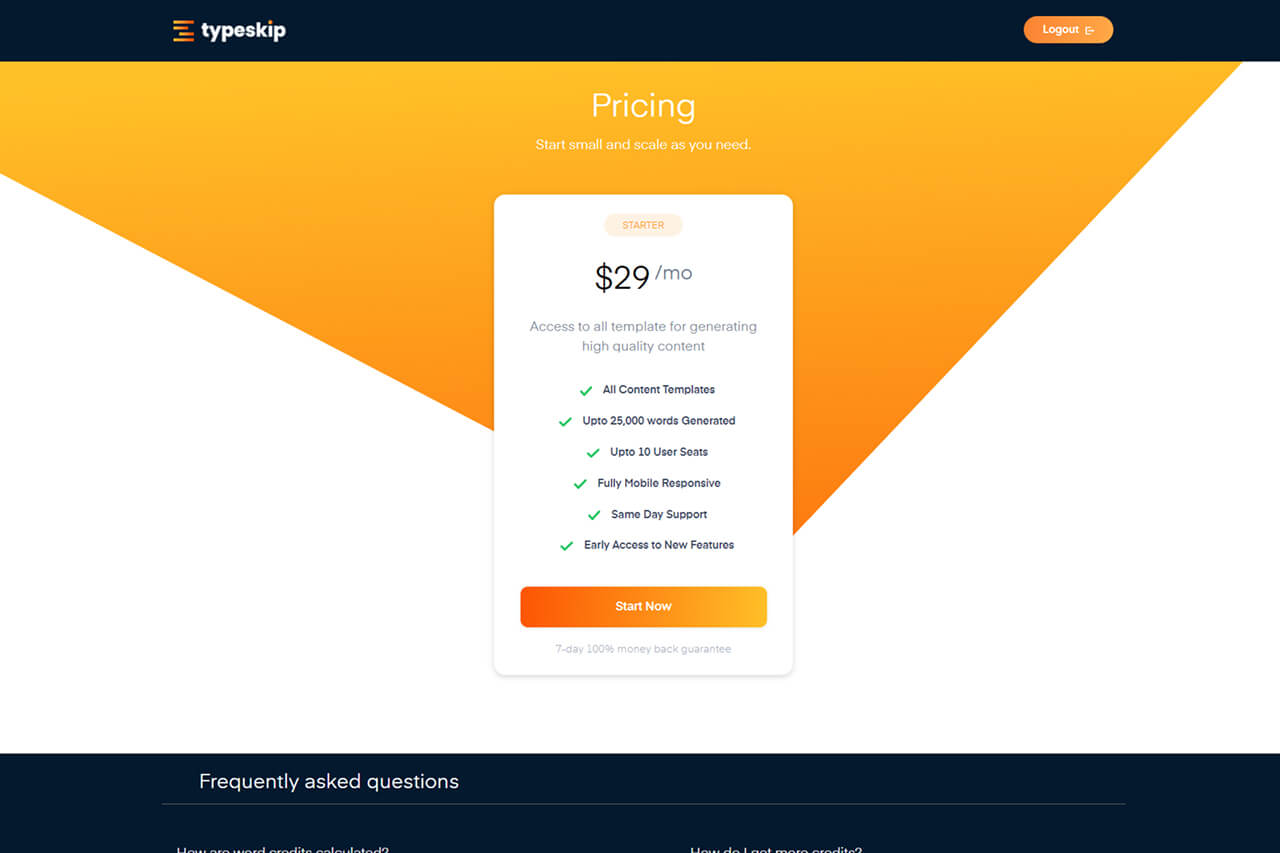 Typeskip turn keywords and one-liners into persuasive, high converting ads, product descriptions, and blogs etc.